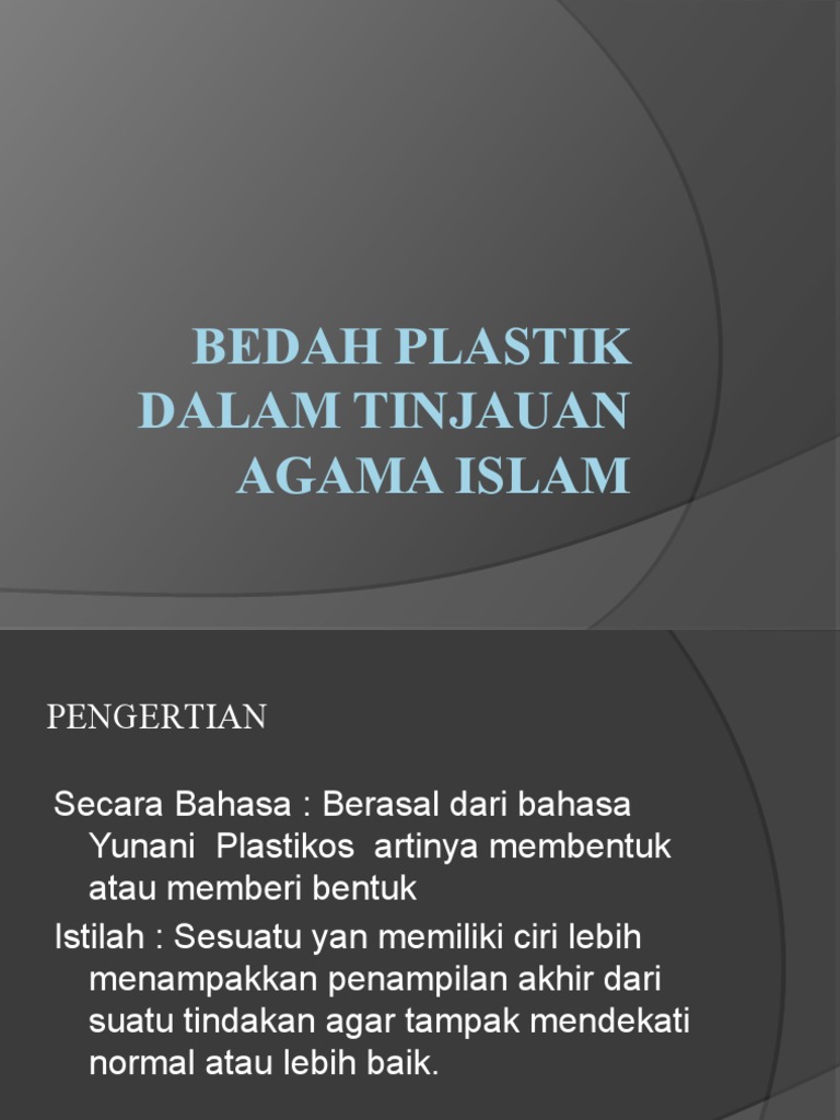 Sains Teknologi Dan Kejuruteraan Dalam Islam Tajuk Pembedahan Kosmetik Menurut Islam Dan Perspektif Sains from 2.bp.blogspot.com 1.operasi plastik yang mubah adalah operasi yang bertujuan untuk memperbaiki cacat sejak lahir seperti bibir sumbing. Operasi plastik secara umum adalah berubah bentuk dengan cara pembedahan, sedangkan operasi plastik menurut ilmu kedokteran adalah pembedahan. Pembedahan plastik dalam islam ᴴᴰ i ustaz anwar hussain. Pembedahan selaput dara berdasarkan perspektif islam.pdf. Dengan menyatakan bahawa dia kemudian menyedari bahawa hospital pembedahan plastik yang dia tuju atas saranan rakannya tidak cekap dalam pembedahan, artis china itu mendapat ribuan komen. Operasi plastik dalam bahasa arab dikenal dengan istilah jirahah at tajmil yang berarti operasi bedah untuk memperbaiki penampilan satu anggota tubuh yang nampak atau untuk memperbaiki fungsinya ketika anggota tubuh tersebut hilang, lepas, atau rusak (al mausu'ah at thbbiyh al haditsah 3/454). Pengenalan pengenalan pembedahan kosmetik/pembedahan plastik biasanya dilakukan pada bahagian tubuh badan seperti: Menurut laporan di media china, siasatan dibuka terhadap kakitangan hospital di guangcou.