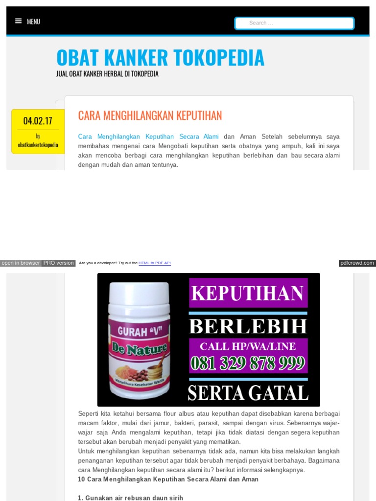 Related : Merawat Keputihan Secara Tradisional / Obat Keputihan Tradisional Posts Facebook - Jangan pernah menganggap enteng penyakit keputihan, karena ternyata penyakit ini dapat menyebabkan kemandulan, kanker, bahkan..